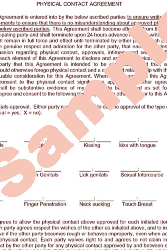 This is a fully modifiable Physical Contact Agreement. This Agreement is entered into by the below ascribed parties to ensure written ratification of verbal statements to ensure that there is no misunderstanding about approved physical contact between the below ascribed parties.
