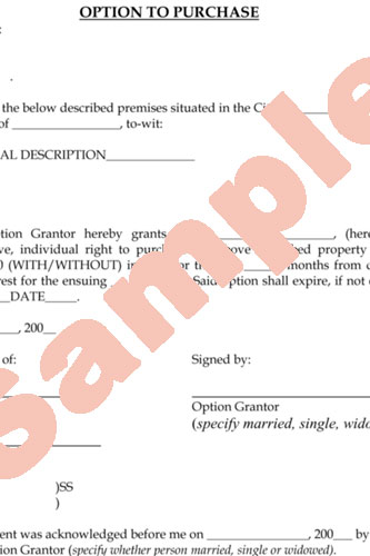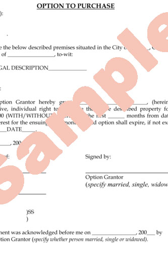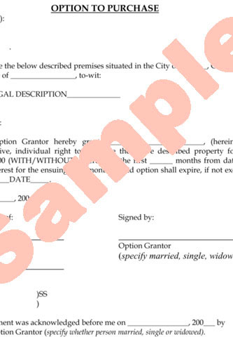 Do you want to buy or sell an OPTION to buy a property to/from someone? Is your Landlord willing to sell you the house you've rented from him or her for many years? An Option to Purchase may make your dreams come true. If you can negotiate the sales price and secure an Option to Purchase, you are half way there. This Option to Purchase form has been used to convey the right to buy property from an "Option Grantor" to the buyer ("Option Grantee") but does not bind or obligate the Option Grantee to complete the sale or actually buy the property. Instead, the buyer (Option Grantee) has OPTION to buy the property. The OPTION TO PURCHASE form is modifiable to suit your individual circumstances.