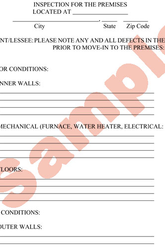 Landlords and Tenants use this Property Inspection Inventory form to document the move-in condition of the property. Like renting a car, the lessee (Tenant) must note any deficiencies in the property, and the lessor (Landlord) must note the good condition of all aspects of the property in order to claim any damages to be charged to the Tenant, and to deduct from the Tenant's security deposit. Landlords must use a move-in and a move-out Property Inspection Inventory denoting all damages claimed by the Landlord and charges being assessed against the Tenant's security, and sent to the Tenant at his or her reported new address.