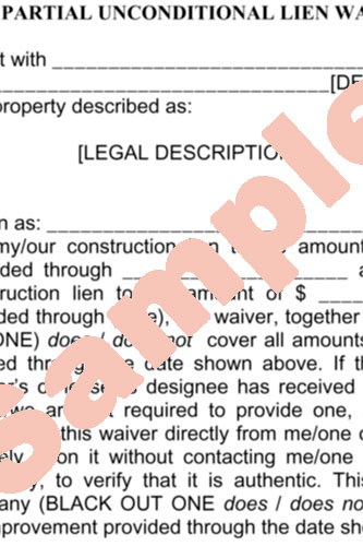 Subcontractors, Contractors, Property Owners and Project Managers use this form to partially, yet unconditionally release lien rights as to subcontractors as jobs are partially completed and paid for the partially, but not fully completed. If you are a subcontractor or a contractor, you know the importance of these forms. If you are a subcontrator they get you paid. If you are a contractor, you use the form to state what is owed and to ensure the subcontractor finishes the job. This form should be signed by every subcontractor every time a check is issued and an improvement is made to a property. When drains are put in, when basements are dug out by the excavators, when the cement is poured by the cement contractor, when the framers start to frame, etc. The forms says what is paid and what is due. Never pay a subcontractor without obtaining a written lien waiver.